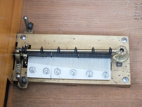 Wenn allerdings der Tonkamm beschädigt ist (Zungen bzw. Dämpfer abgebrochen, Gewichte wegkorrodiert), kann ich Ihnen leider nicht helfen. Es wäre zwar möglich, neue Zungen oder Dämpfer anzubringen, aber die Tonkämme müssen danach wieder gestimmt werden und dazu fehlt mir dann die musikalische Ausbildung.