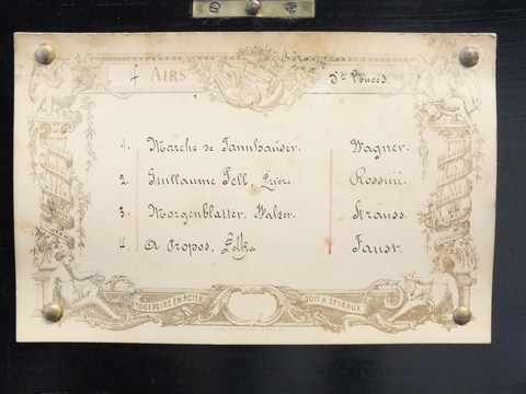 Diese Kalliope Plattenspieluhr ist sozusagen der Vorgänger des Schallplattenspielers. Die Blechscheiben waren einfach austauschbar und man konnte somit eine "Schallplattensammlung" anlegen, denn die Blechscheiben konnten durch stanzen recht kostengünstig gefertigt werden (im Vergleich zu den Walzen) und es gab nun ein großes Angebot an Melodien. Ende des 19. Jahrhunderts gab es in und um Leipzig mehrere Hersteller dieser Spielwerke.
